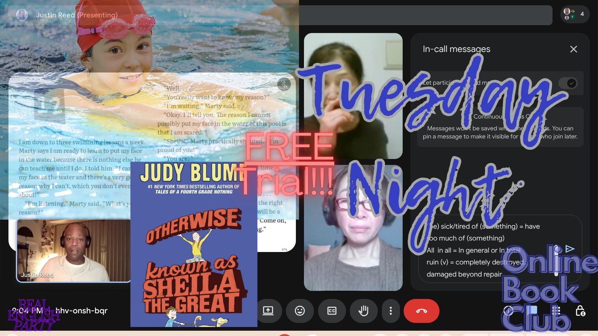 Join the Real English Party book club event for less experienced English learners!